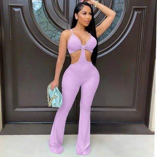 Backless Stretch Bell pants jumpsuit Summer Solid Color Joggers Outfits Trousers Bell Bottom Pants Rompers sexy Women