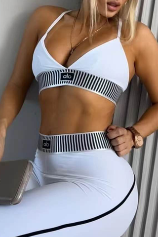 Black Casual Sportswear Letters Patchwork Spaghetti Strap Sleeveless Two Pieces