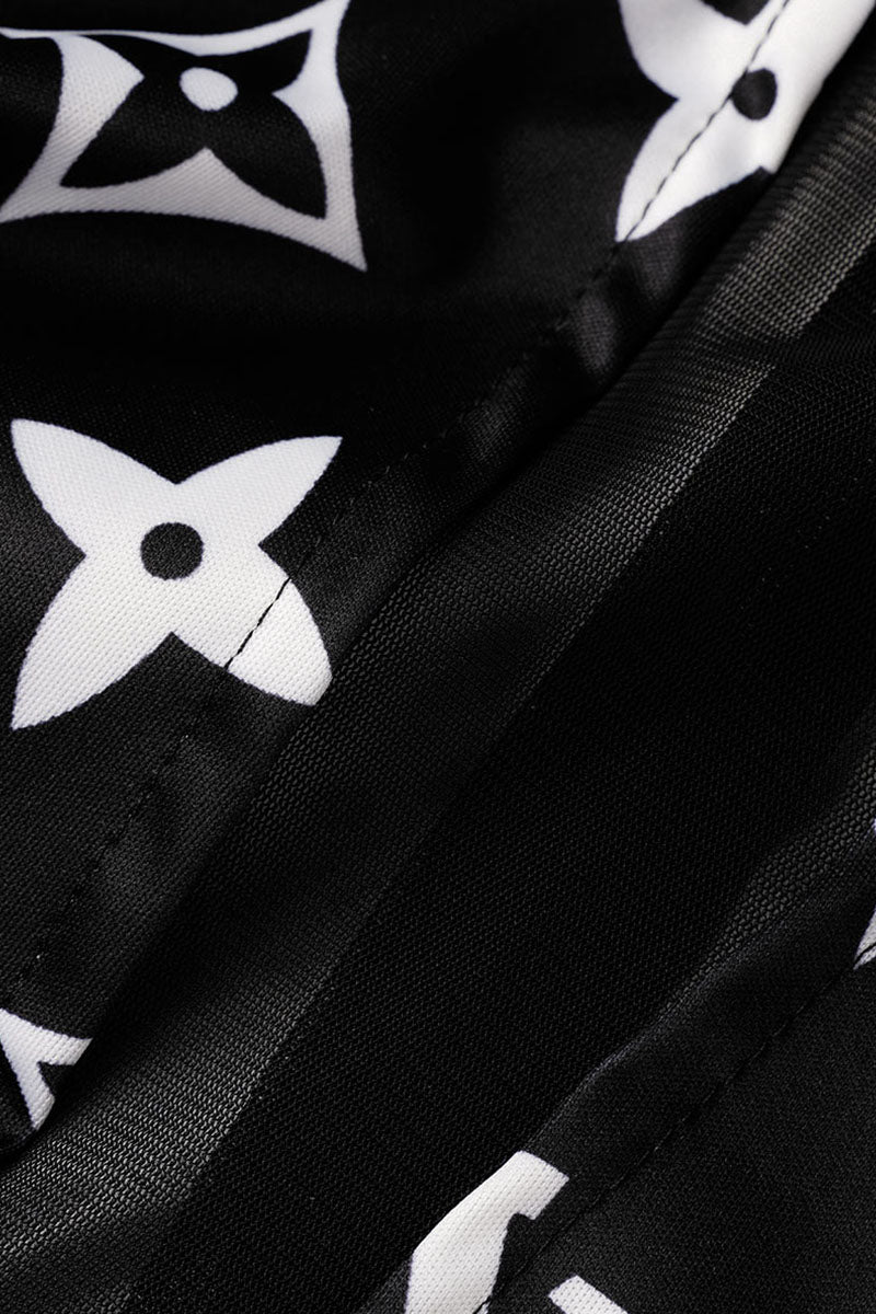 Black Fashion Street Print Patchwork Square Collar Rompers