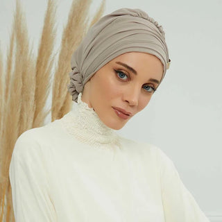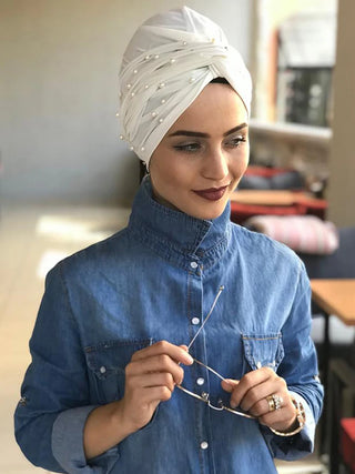 Plain Instant Turban Hat Solid Inner Hijabs Caps Women Pearl Decoration Head Wrap Headband