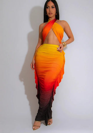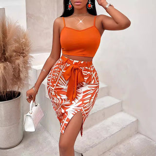 Women Summer Suspender Top And Tie-Dye Skirt Two-piece Set