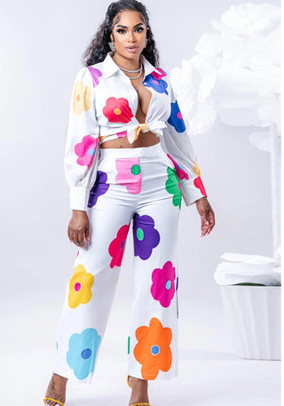 Women's Fashion Casual Digital Printing Floral Pants Two-Piece Set