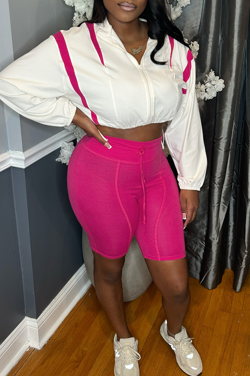 Black Casual Stripe Draw String Zipper Zipper Collar Long Sleeve Two Pieces