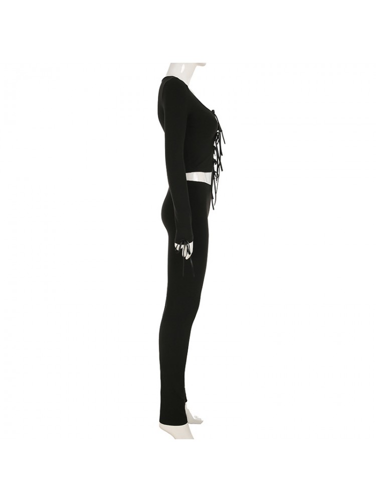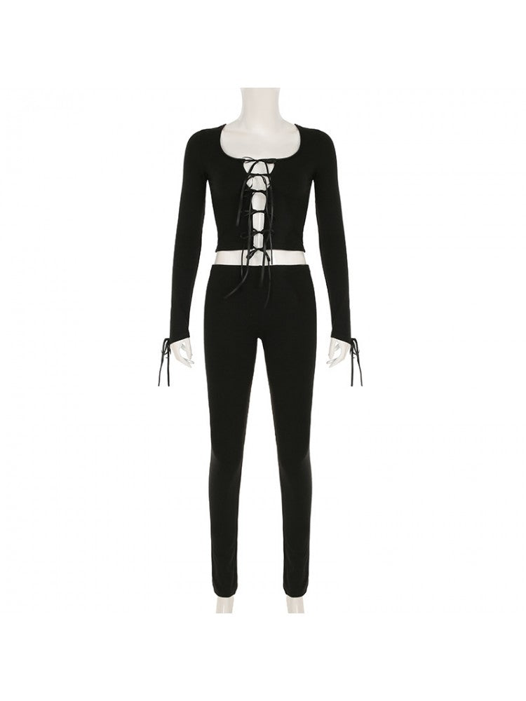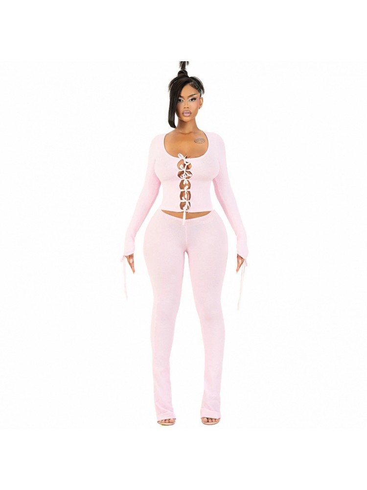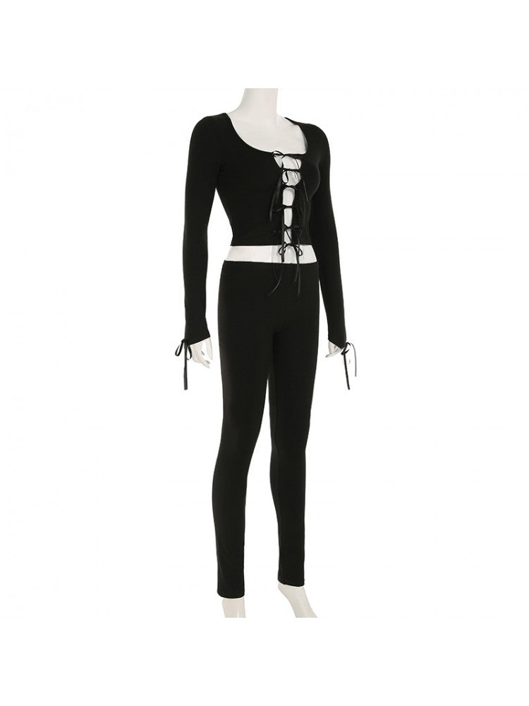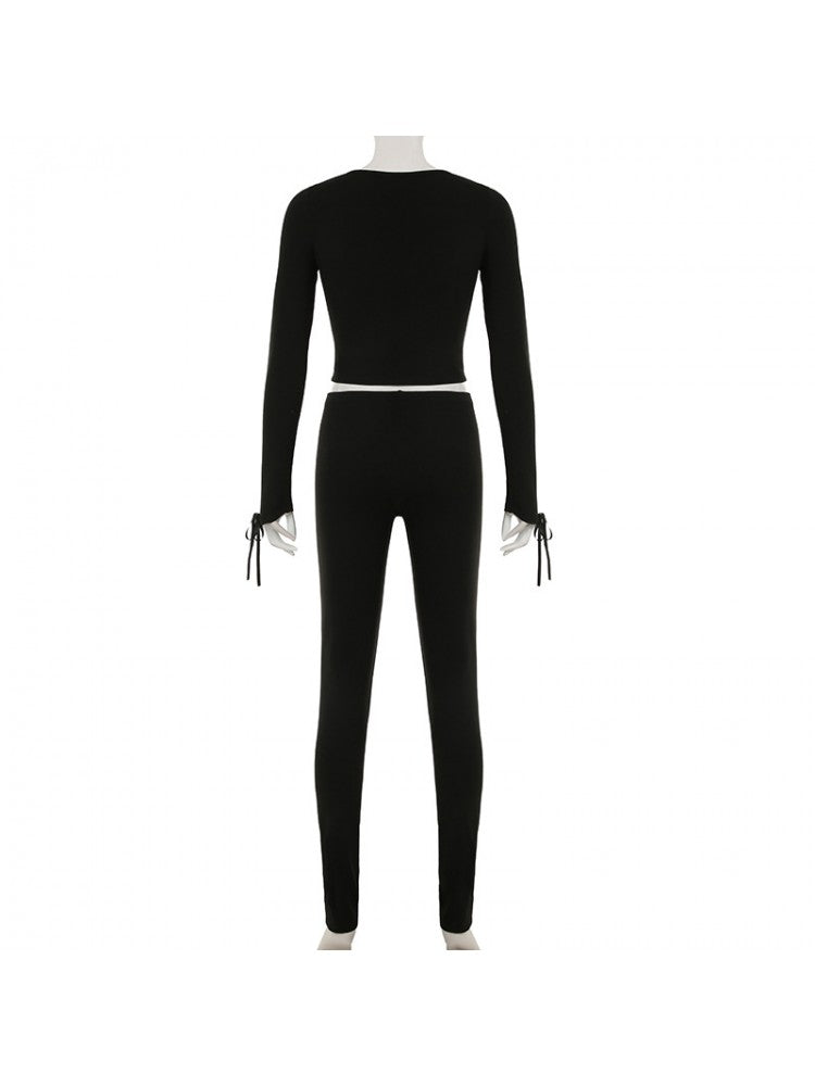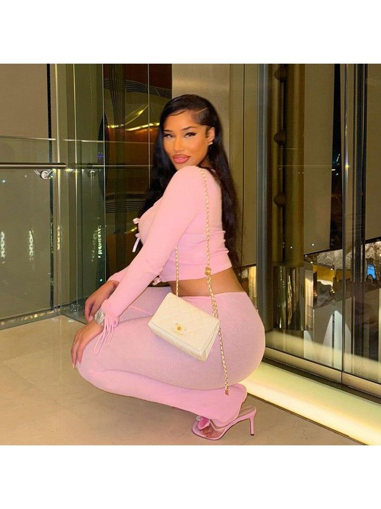 Bow Tie-wrap Cropped Bodycon Pant Sets