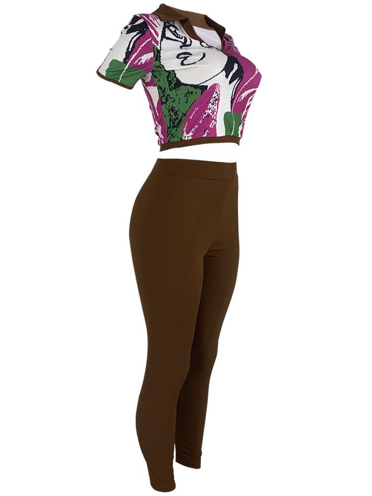 Colorblock Lapel Cropped Bodycon Pant Sets