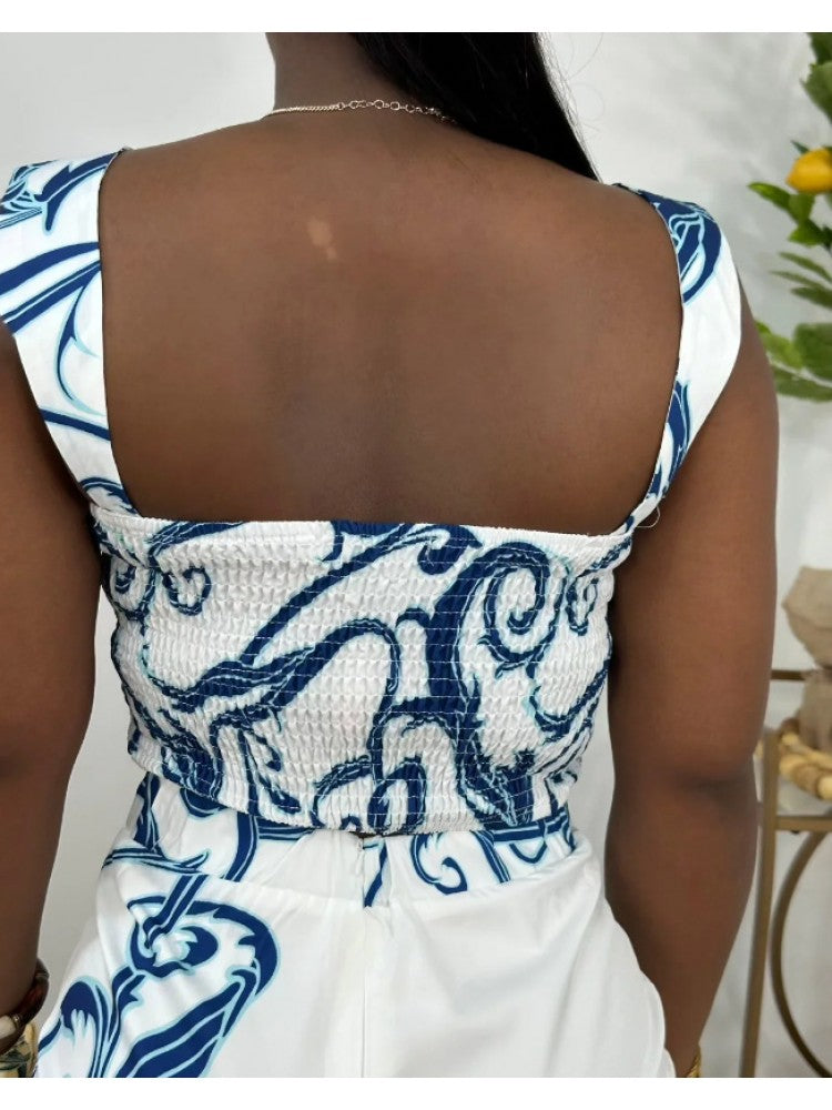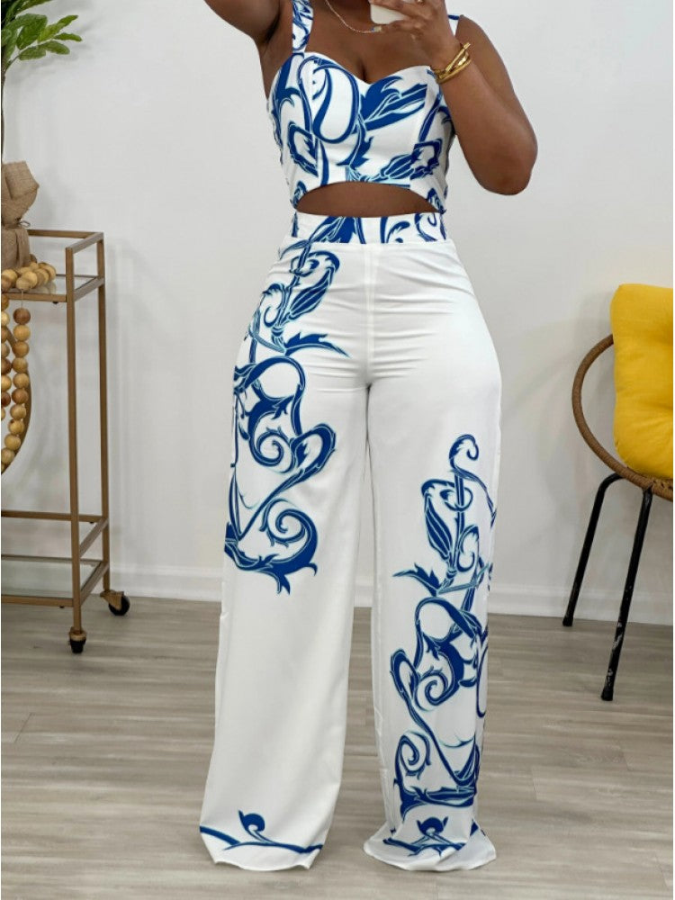 Geometric Pattern Spaghetti Straps Cropped Pant Sets