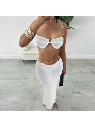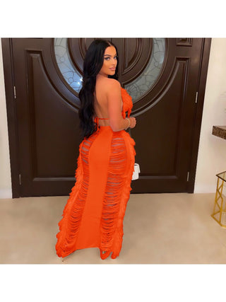 Summer Halter Hollowed Out Tassels Skirt Suit