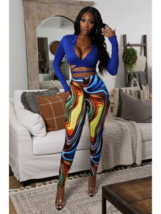 Wrap V Neck Collar Tie-wrap Cropped Pant Sets