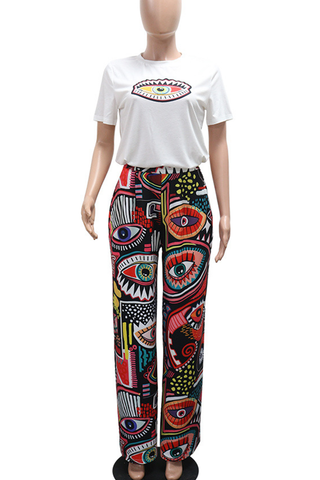Multi-color Casual Print O Neck Short Sleeve Two Pieces