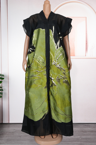 Green Casual Print Patchwork V Neck Half Sleeve Two Pieces
