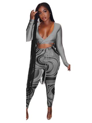 Fall Sexy Tie Wrap Two Piece Sets Clothing