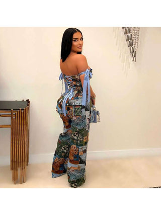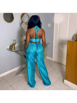 Metal Buckle Tie-wrap Halter Backless Pant Sets