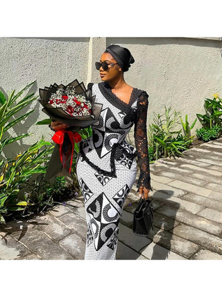 Asymmetric Neckline Long Sleeve Lace Detail Skirt Sets