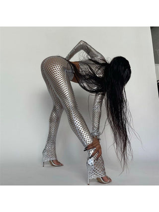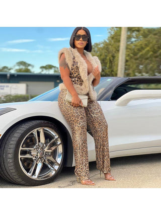 Sexy Leopard Sequins Fur Patchwork Sleeveless 2pcs Pant Sets