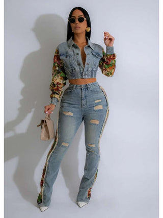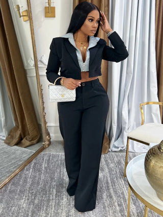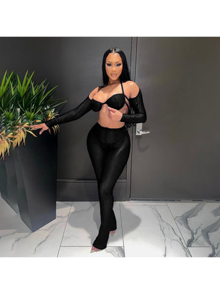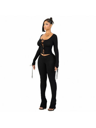 Lace Up Cropped Shawl Pant 3 Pieces Sets