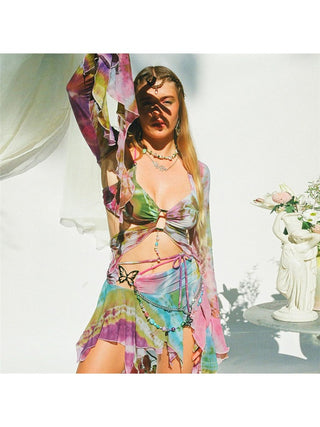 Butterfly Ribbon Lace Up Skirt 3 Piece Sets