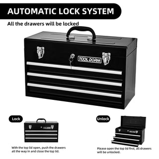 20.3inch Metal Tool Box With 2-4 Drawers Portable Steel Tool Chest With Metal Cylinder Lock And Latch Closure, Black And Red Two Color Powder Coating, Suitable For Garage, Warehouse