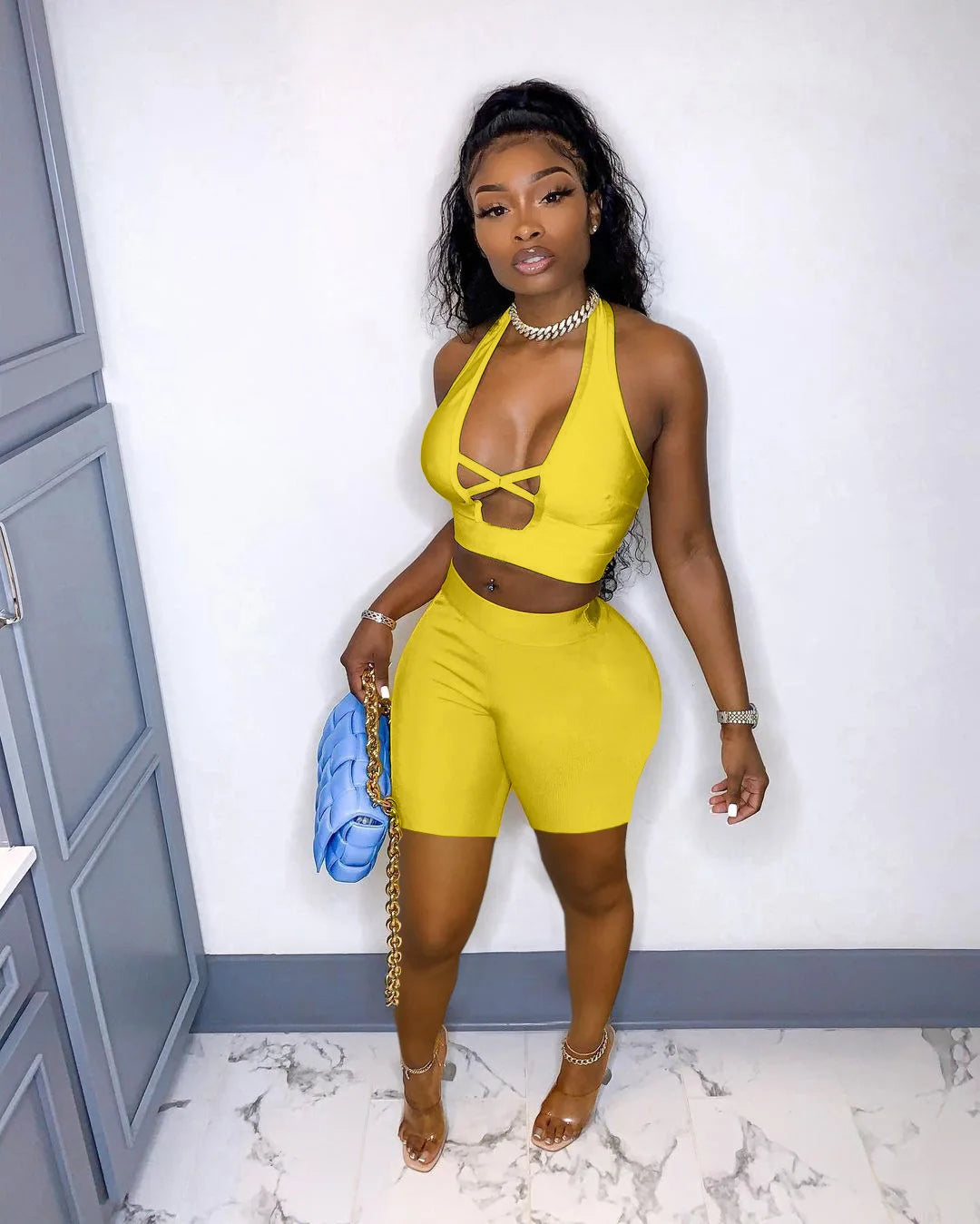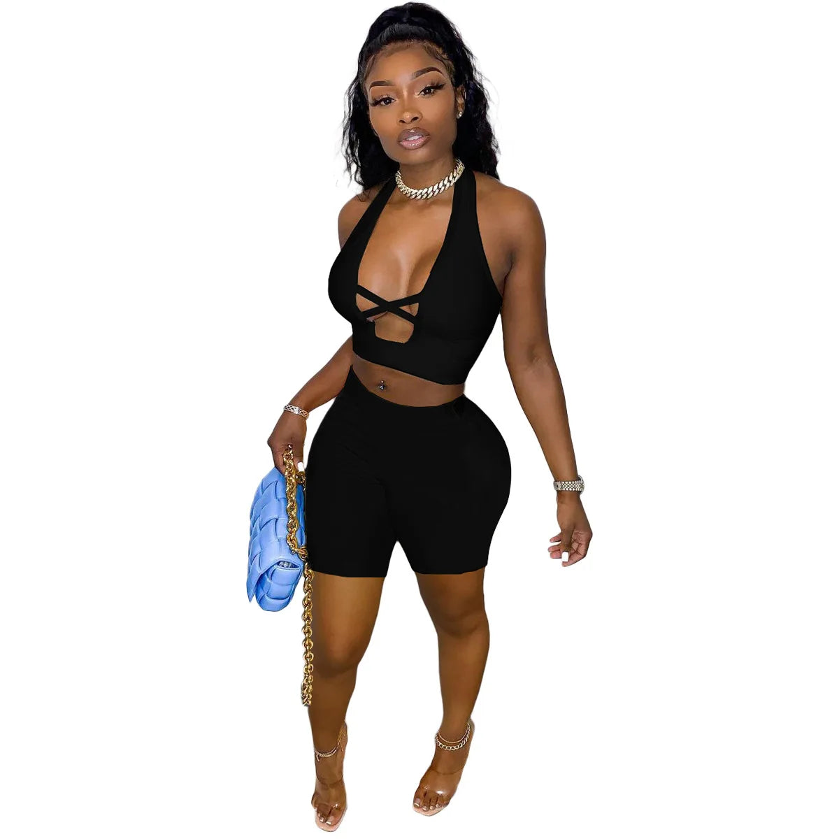 TFE Summer Co Ord Set Women Tracksuit 2 Piece Set Fashion Sexy Hollow Out Halter Crop Top and Shorts Sets Club Outfits