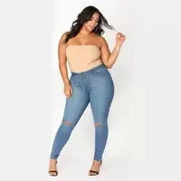 Fashion Plus size pants high waist tight elastic leggings high quality hollow out women's jeans for streetwear