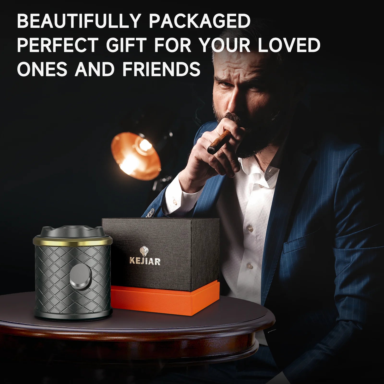 4-in-1 Cigar Cutter with Cigar Holder, Two Size Guillotine, V-Cutter, Cuts up to 68 Ring Size Cigars,Father's Day Gift for Men
