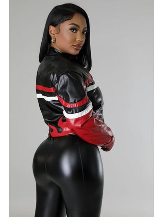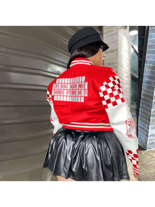 Letter Printed Button Up Long Sleeve Baseball Jacket