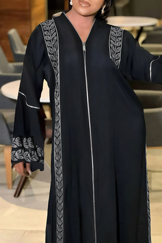 Black Casual Hot Drill Zipper V Neck Long Plus Size Overcoat