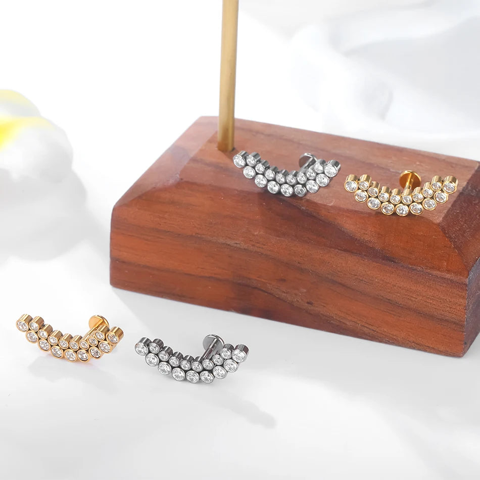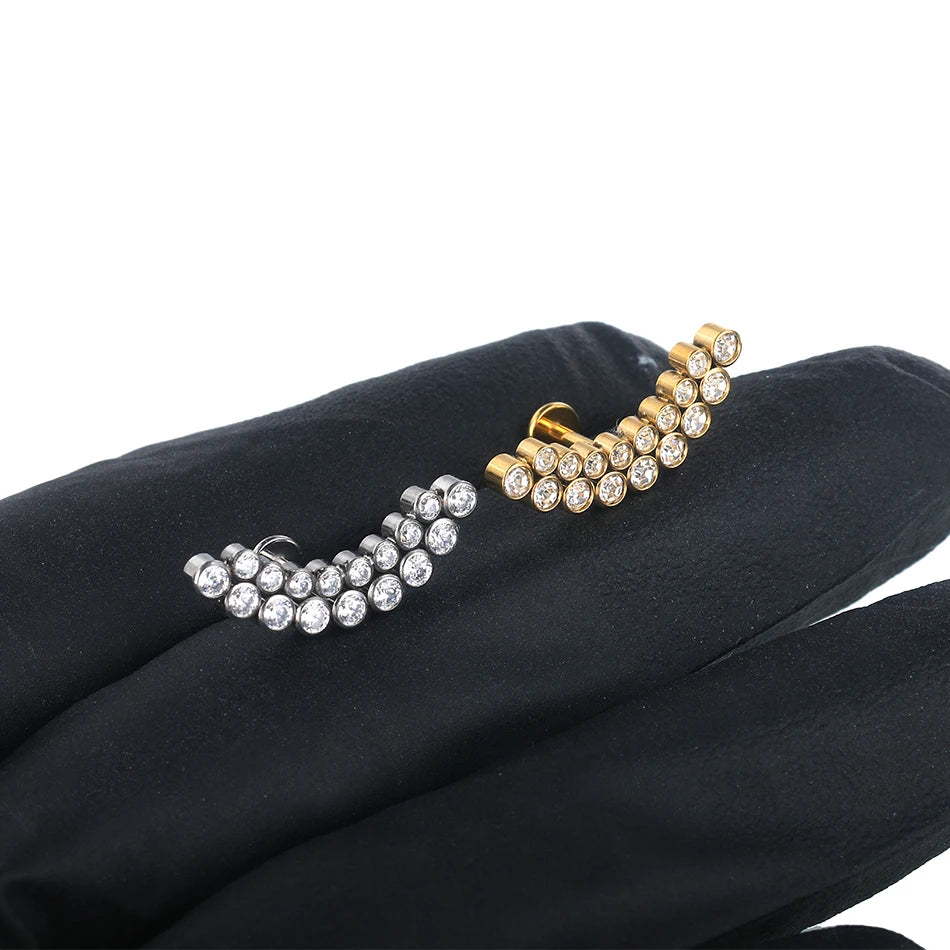 PVD Titanium PIERC Labret Stud Double CZ Paved Ear Cartilage Tragus Helix Earrings Lip Ring Daith Piercing Gift for Women