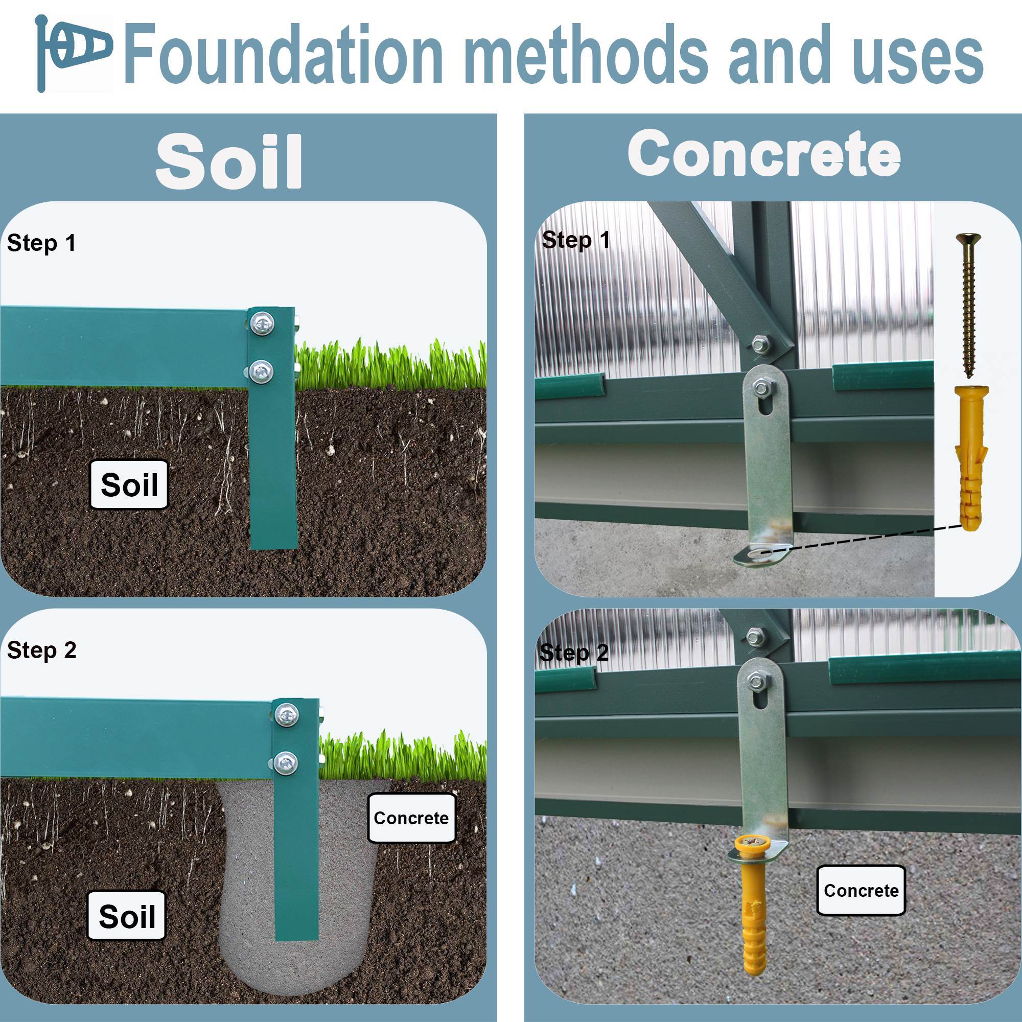 - 【STURDY & DURABLE WALK-IN GREEN HOUSE】This green house kits to build for winter is made of 4mm twin-wall UV/wind resistant polycarbonate panels which can block up to 99.9% of UV rays and provide 90% light transmission and thickened premium aluminum frame, all this together with heavy-duty galvanized base help provide solid support for your entire plant nursery.