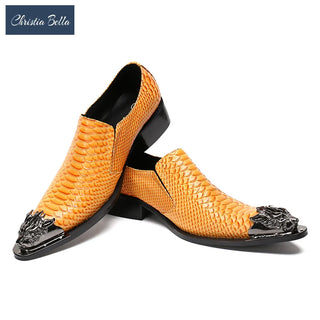 Christia Bella British Yellow Genuine Leather Men Shoes Fashion Male Wedding Dress Shoes Slip on Business Office Shoes Plus Size