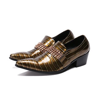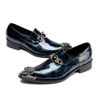 British Style Metal Pointed Toe Banquet Shoes Elegant Big Size Business Office Shoes Social Rivet Male Real Leather Office Shoes