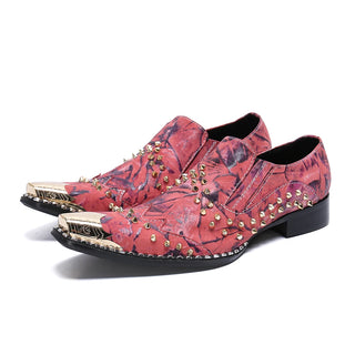 Fashion Pink Rivet Man Square Toe Oxfords Shoes Wedding Prom Shoes Slip on Brogue Shoes Man Business Real Leather Formal Shoes