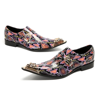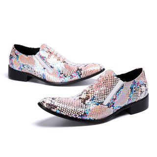 2024 Pink Snake Pattern Men Oxfords Shoes Plus Size Genuine Leather Formal Brogue Shoes Fashion Male Evening Party Dress Shoes