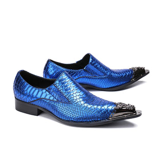 Christia Bella Blue Men Genuine Leather Shoes Metal Pointed Toe Party Club Dress Shoes Fashion Business Man Shoes Big Size