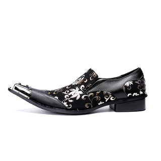 New Gold Floral Print Patchwork Men Suede Leather Formal Shoes Metal Pointed Toe Man Big Size Black Wedding Party Oxford Shoes
