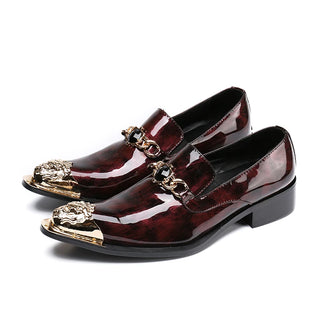 Fashion Patent Leather Men Party Dress Shoes Chains Business Office Brogue Shoes Male Genuine Leather Formal Shoes Plus Size