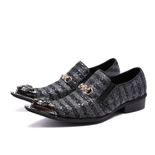 Christia Bella Shiny Sequins Stripe Men Party Oxford Shoes Metal Pointed Toe Men Wedding Dress Shoes Genuine Leather Men Shoes