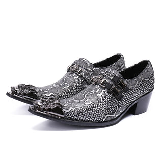 Italian Bridegroom Man Metal Square Toe Formal Shoes Banquet Prom Rise Male Shoes Nightclub Genuine Leather Men Shoes Plus Size