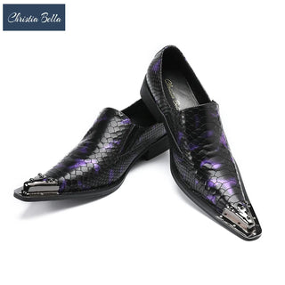 Christia Bella Italian Style Metal Pointed Toe High Heels Men Business Formal Shoes Genuine Leather Men Party Dress Oxford Shoes
