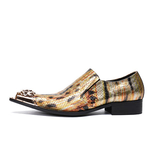 Luxury Gold Metal Pointed Toe Men Snakeskin Grain Real Leather Shoes Wedding Party Man Dress Oxford Shoes Business Formal Shoes