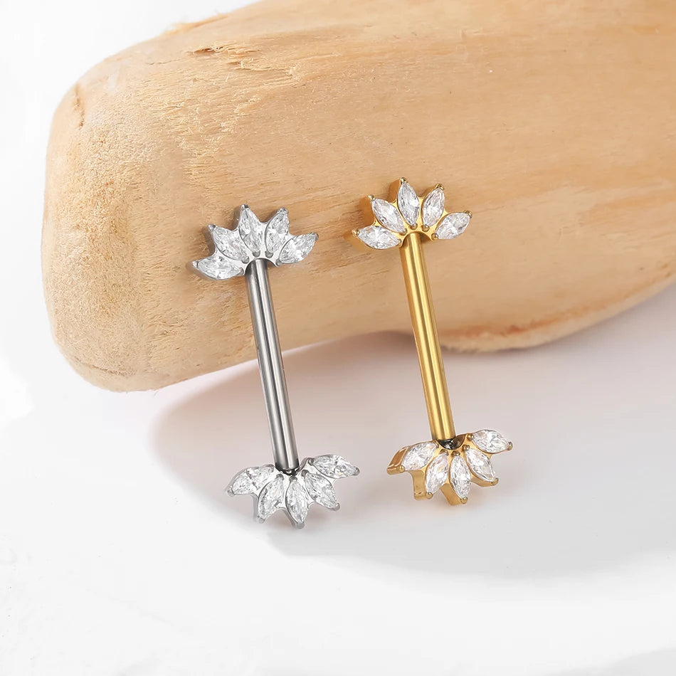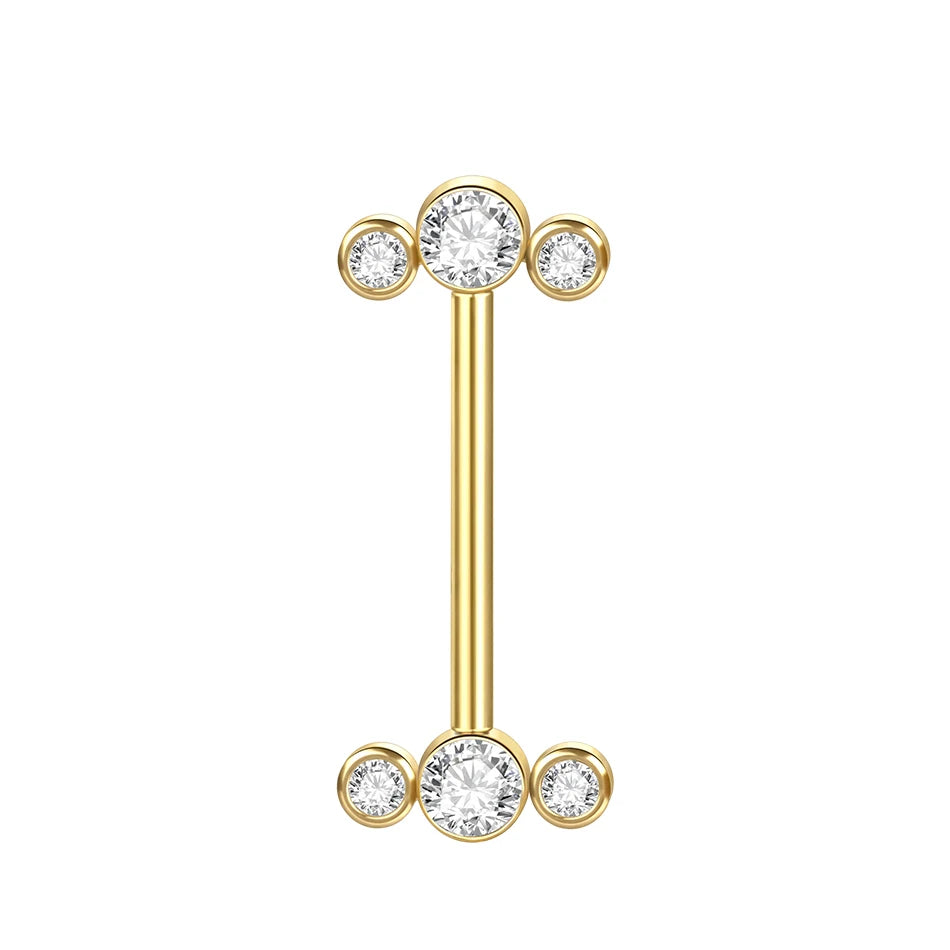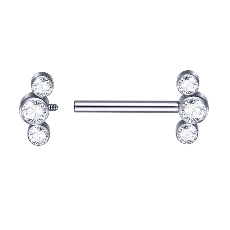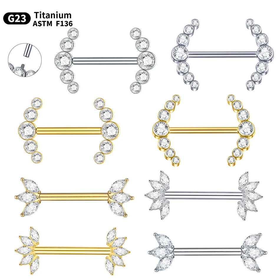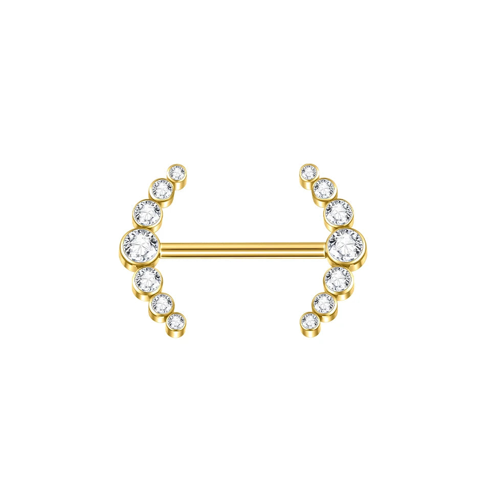 PVD Titanium Nipple Piercing Bar For Women 14G Bezel Set CZ Front Facing Barbell Nipple Shield Ring Sexy Body Jewelry