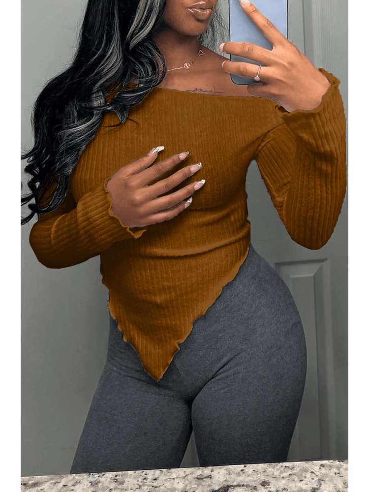 This Asymmetrical Hem Off Shoulder Tops is a must-have for any modern wardrobe! Crafted from high-quality textured Terylene, Polyester and designed with comfort and style in mind, this piece offers a relaxed yet chic look. Crafted with soft, breathable and unique Irregular, Pure Color, Asymmetrical Hem, it ensures all-day ease while keeping you fashionable.