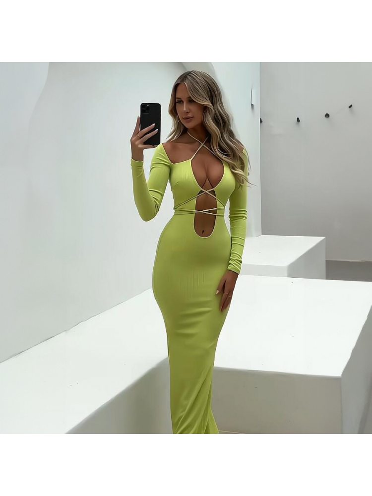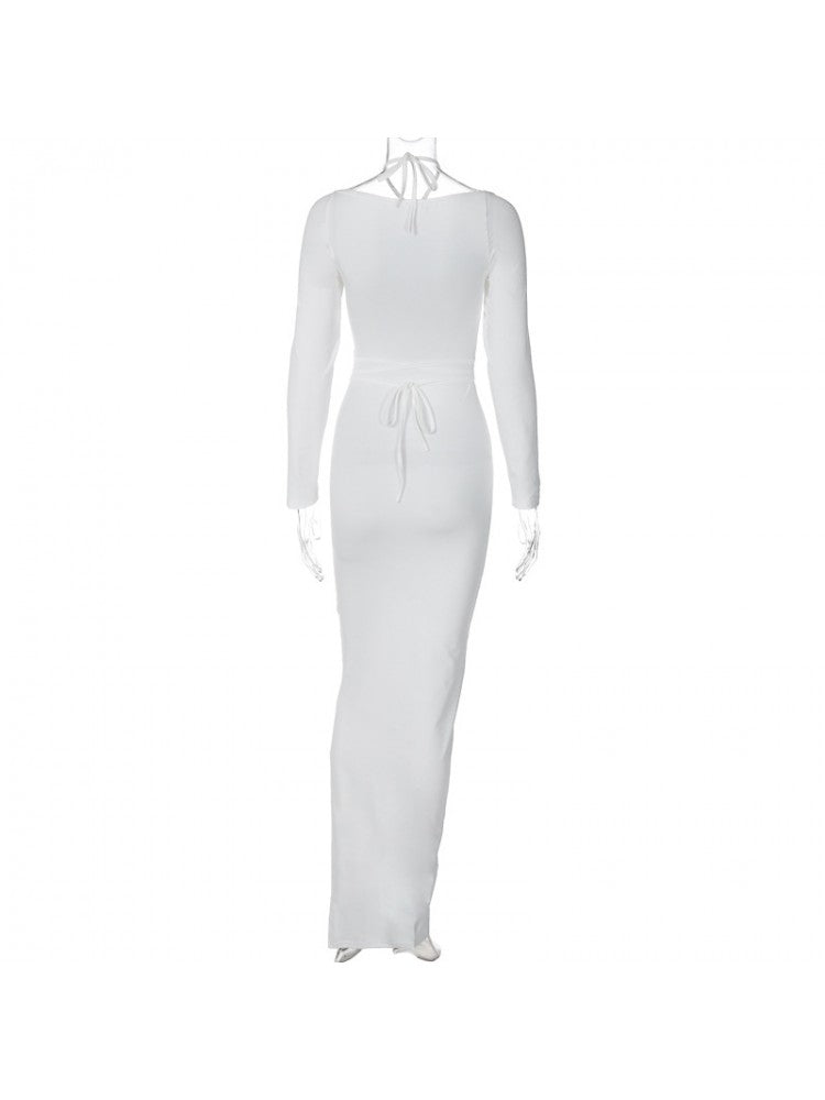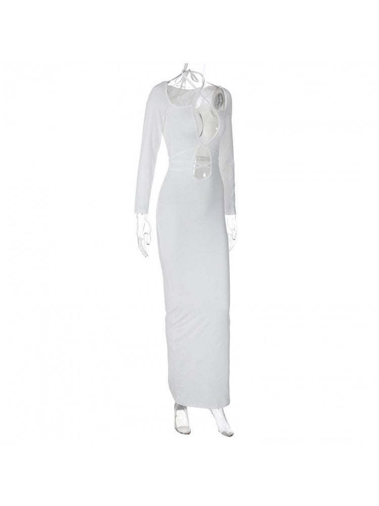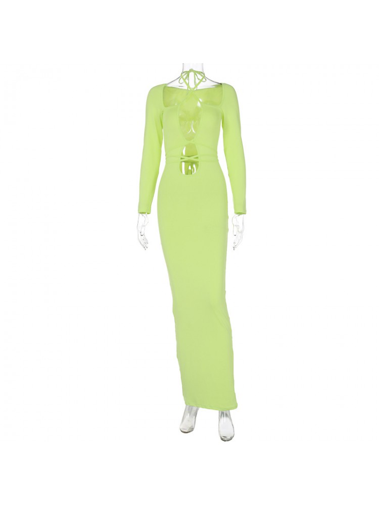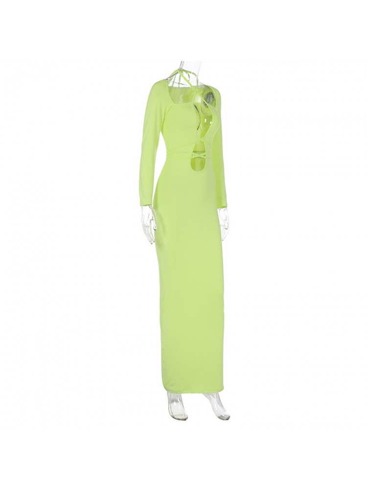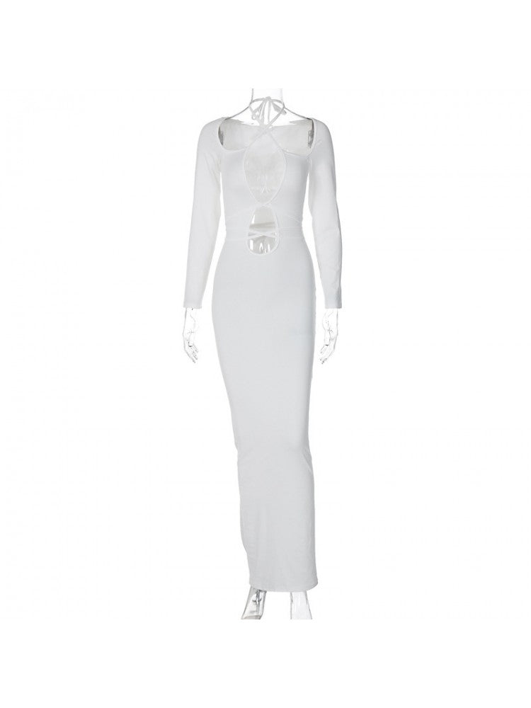 Hollow-out Bandage Long Sleeves Maxi Dress
