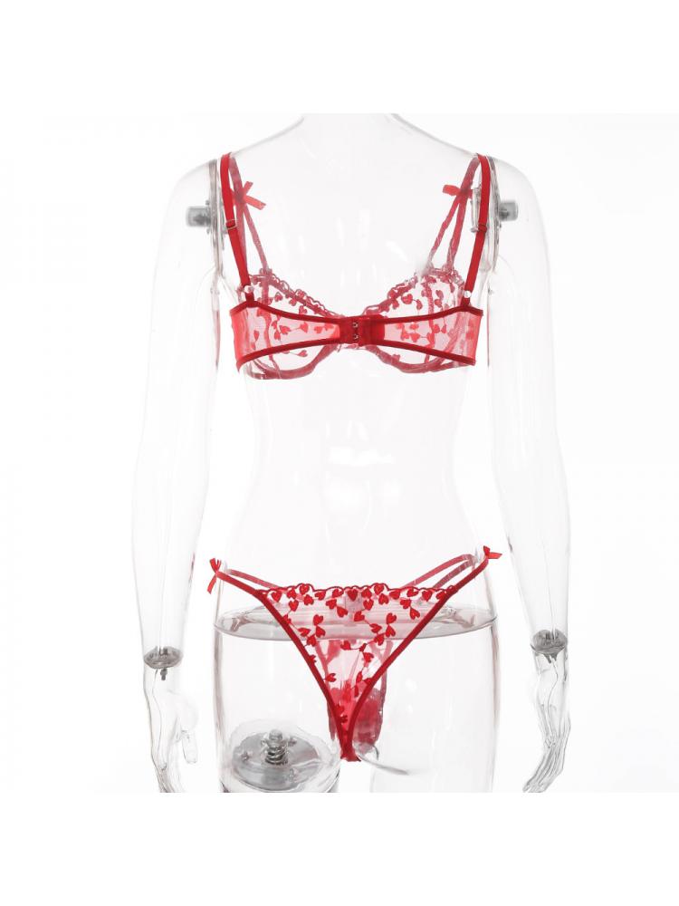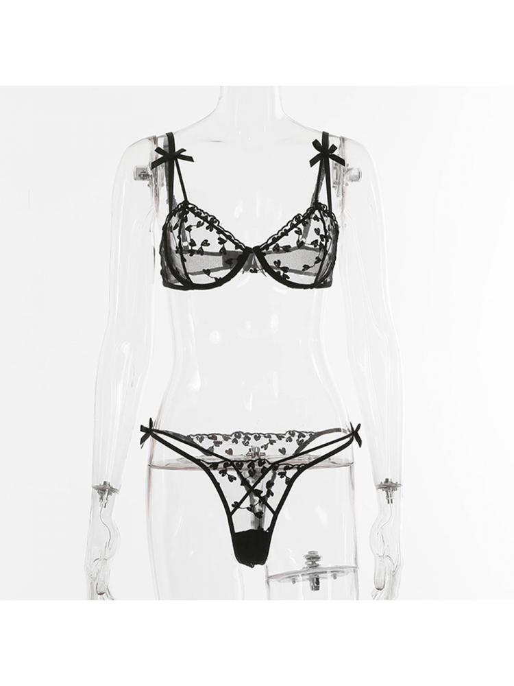 Embroidery Spaghetti Straps Backless Lingerie 2 Piece Sets