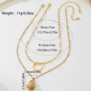 Gold Pendant Necklace And Circle Drop Earrings Set For Women