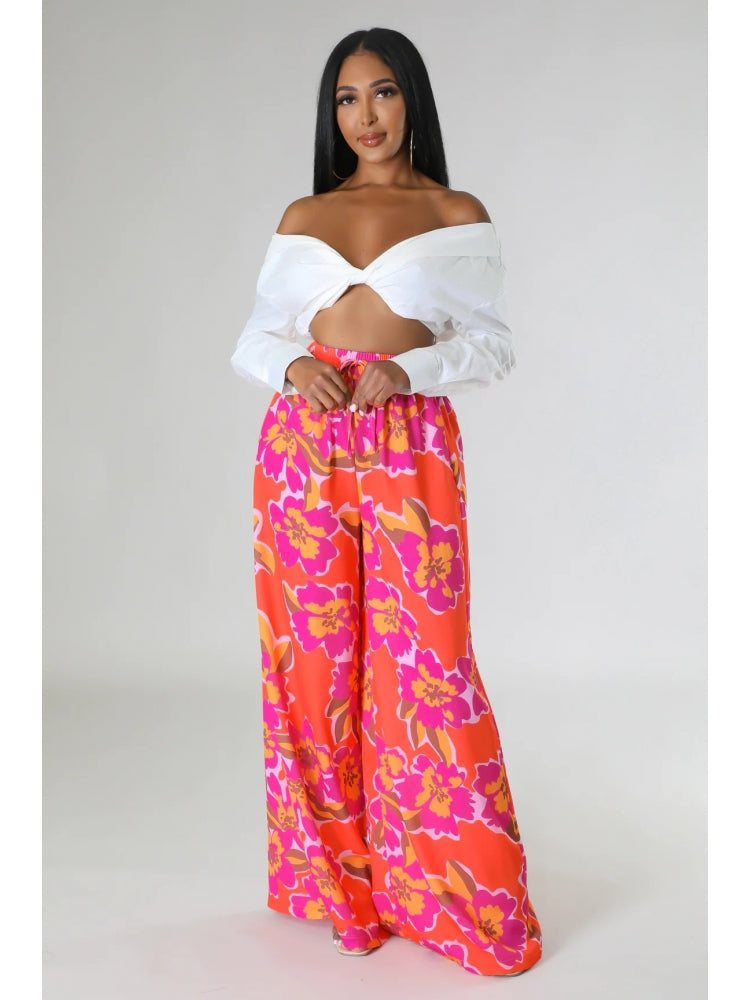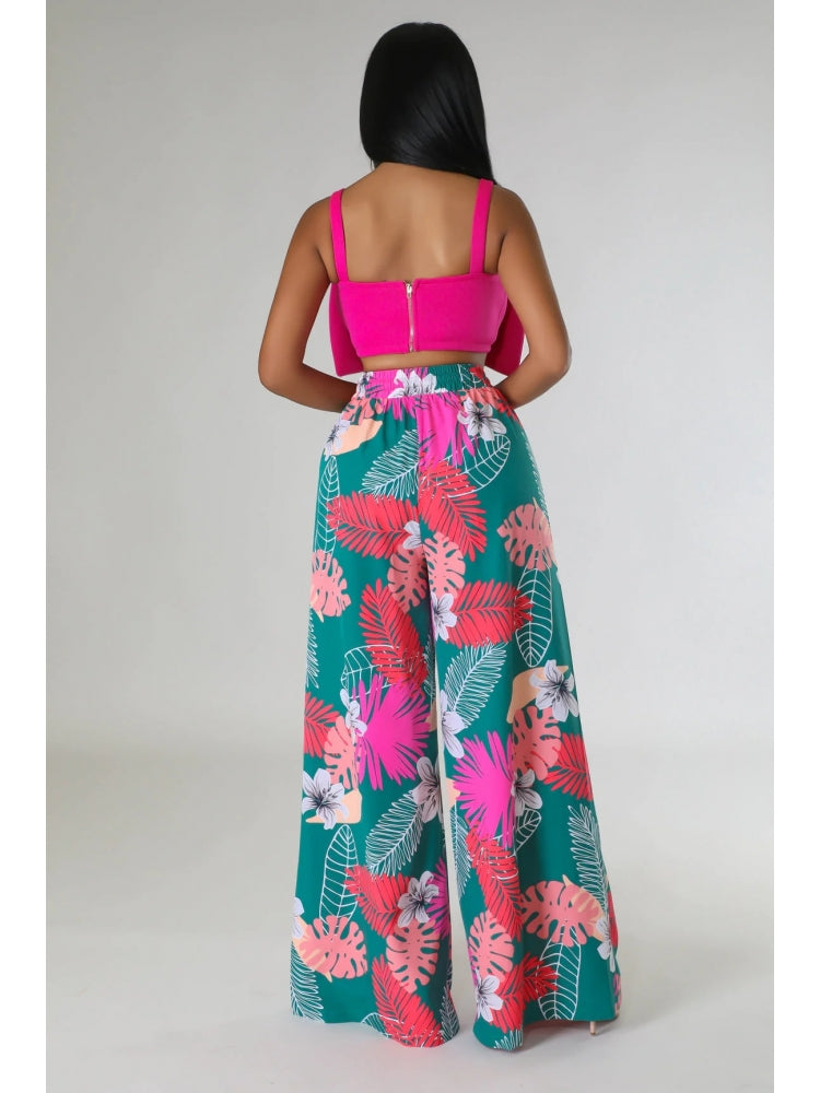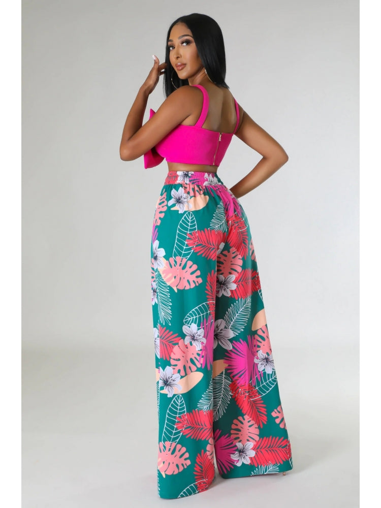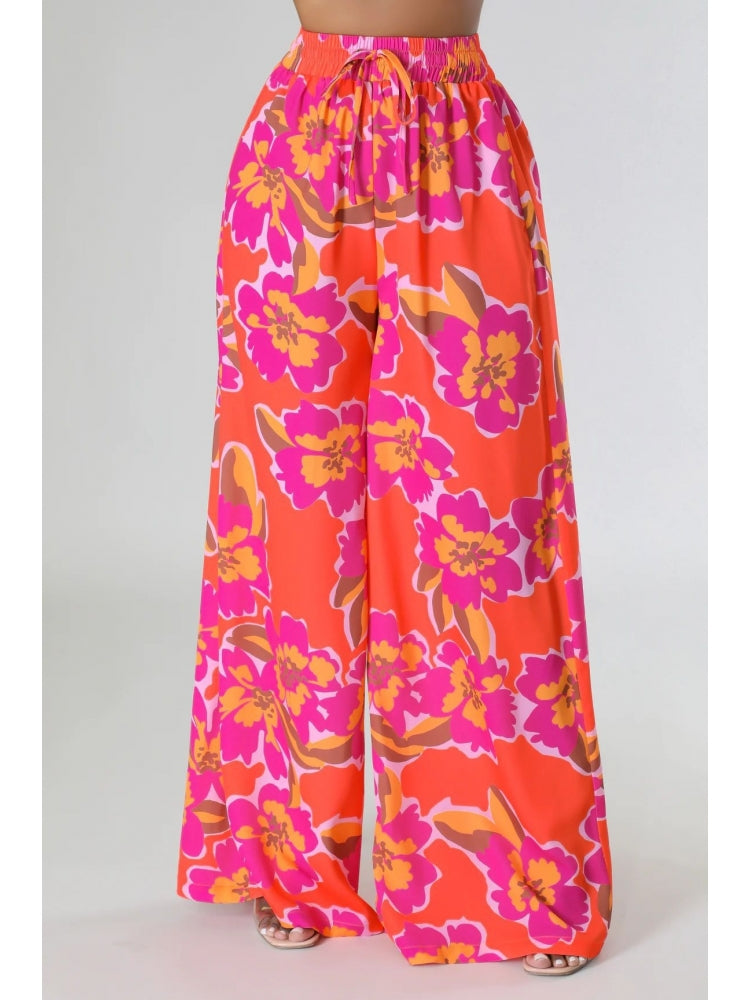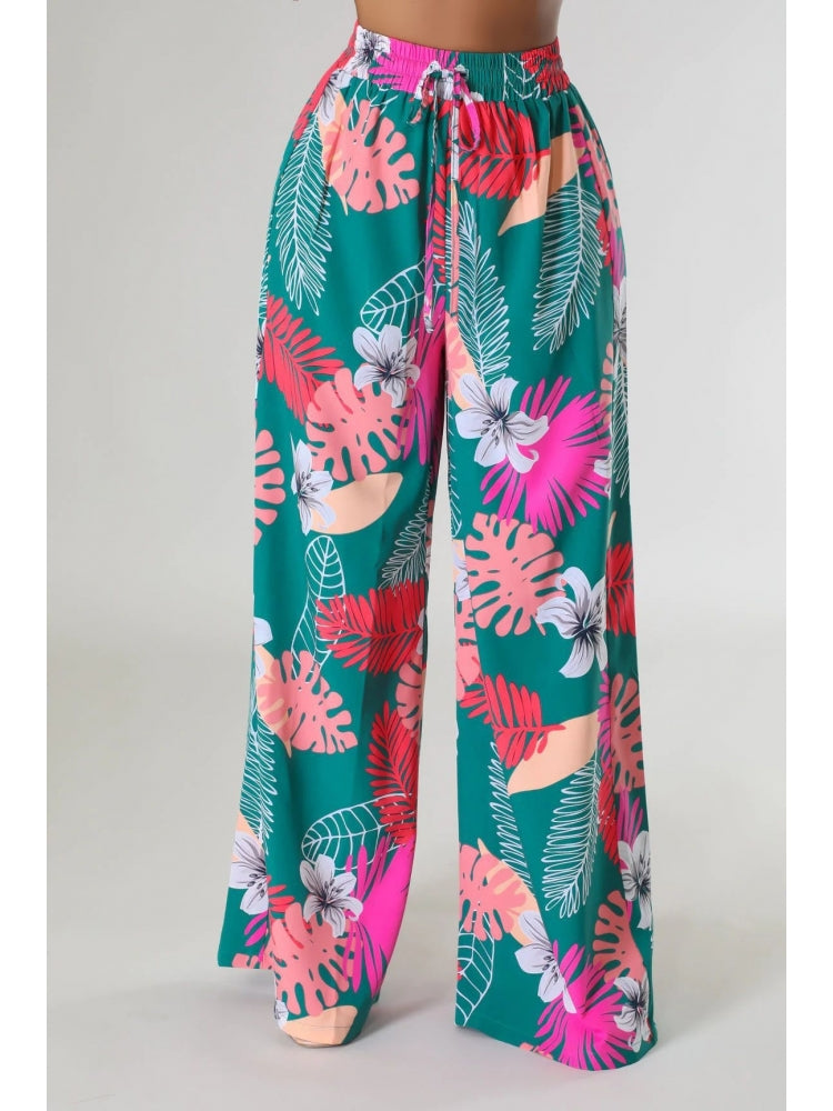 Floral Printed Pocket Wide Leg Pants