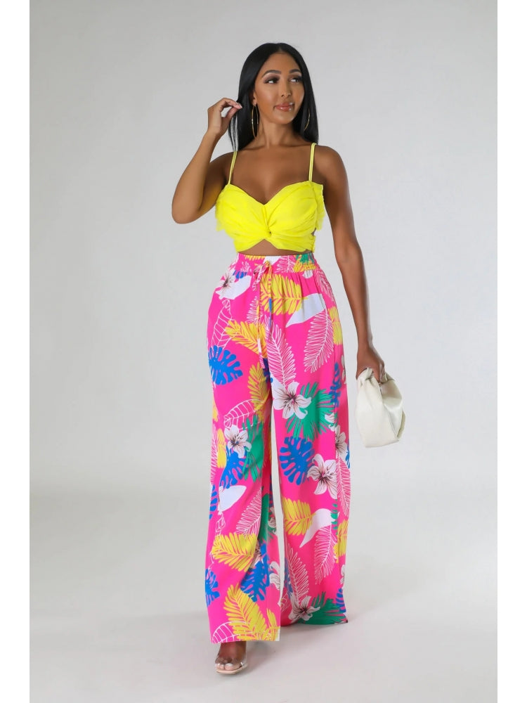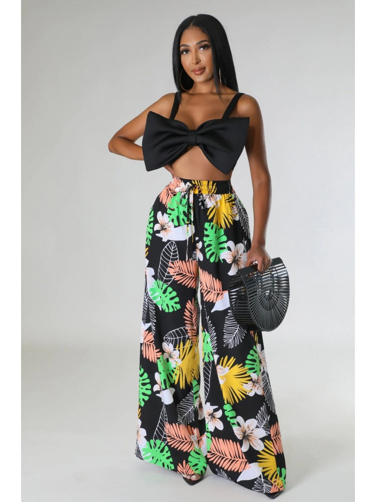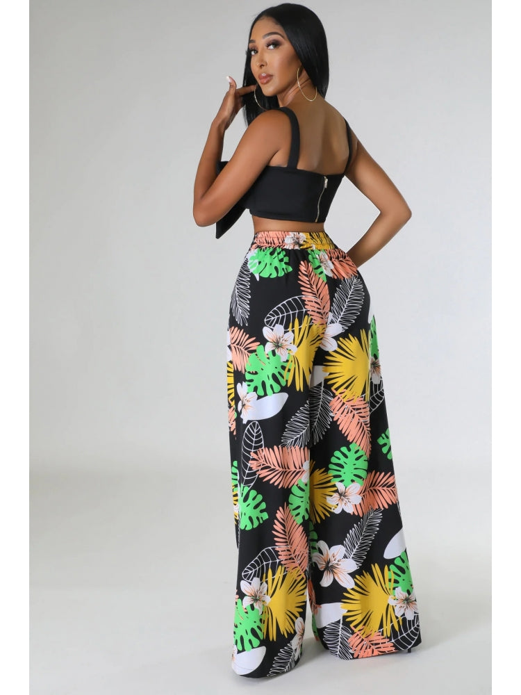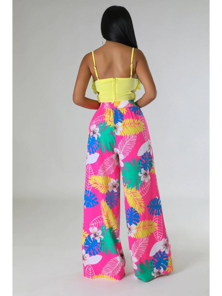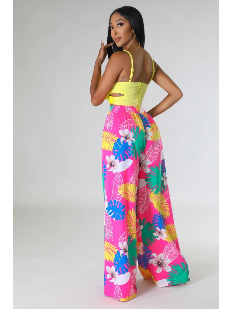 Floral Printed Pocket Wide Leg Pants