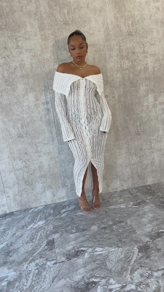 Off Shoulder Wave See Through Lapel Maxi Dress