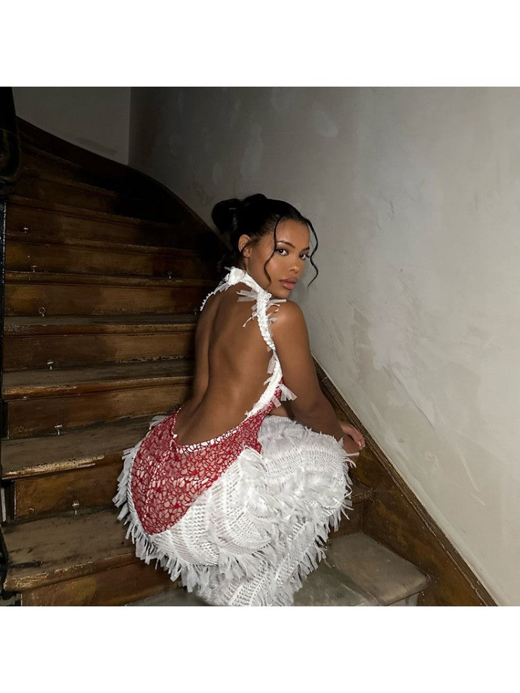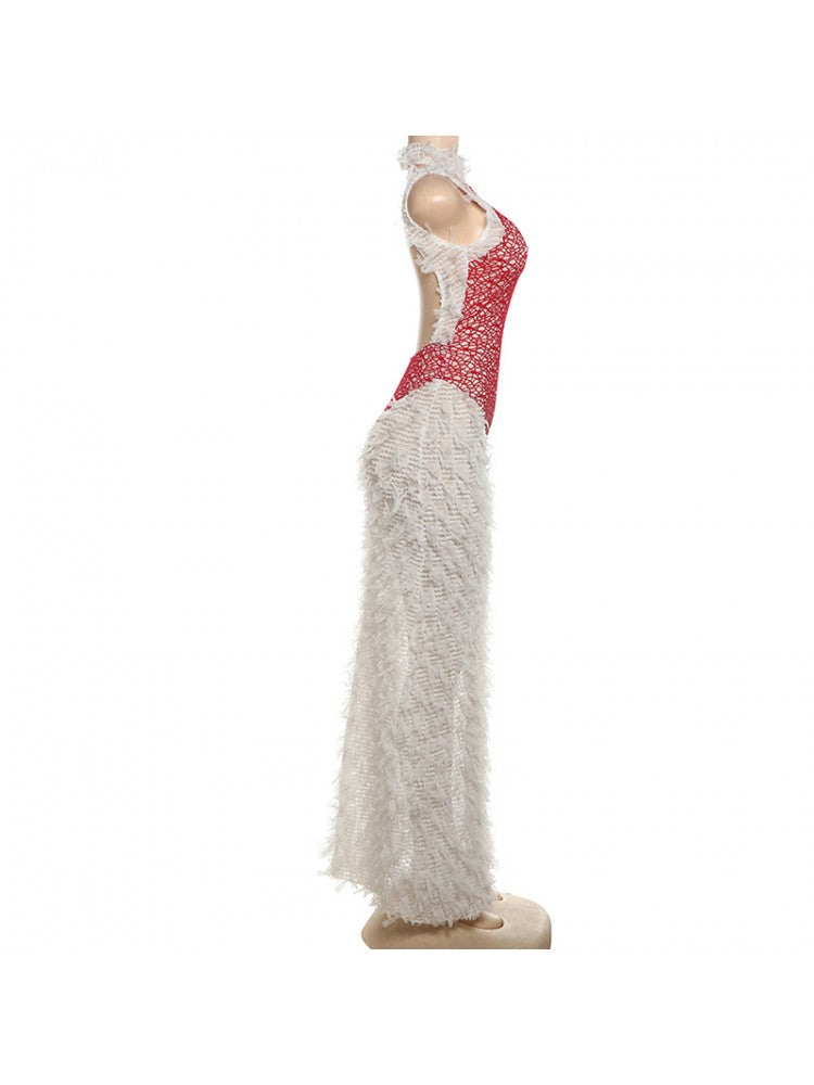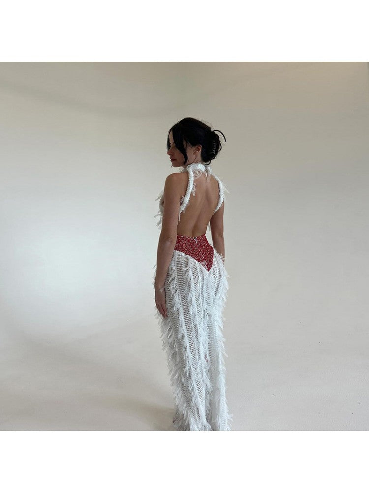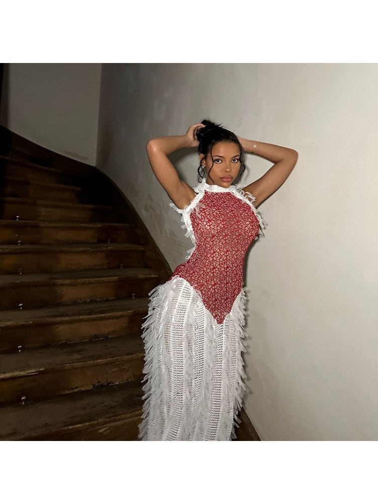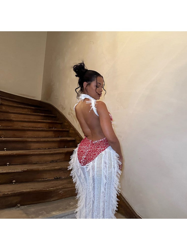 This Color block Fringe Perspective Backless Maxi Dress is a must-have for any modern wardrobe! Crafted from high-quality textured Terylene, Polyester, Spandex and designed with comfort and style in mind, this piece offers a relaxed yet chic look. Crafted with soft, breathable and unique Color block, Patchwork, Fringe, it ensures all-day ease while keeping you fashionable. Available in Red, this affordable Sleeveless Dresses is perfect for staying on-trend without breaking the bank. Whether you're shopping, traveling, on a date, or enjoying a casual day at the beach, this Shop By Sleeve combines comfort, elegance, and affordability in one versatile piece.