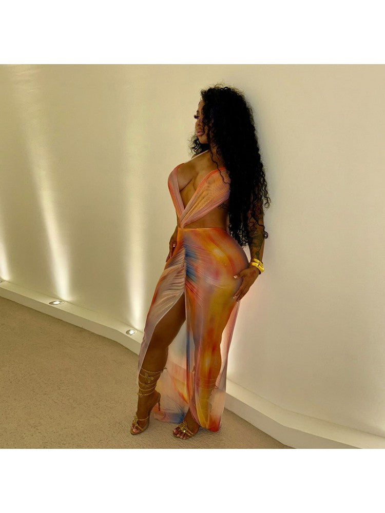 This Color block Split Hem Backless Maxi Dress is a must-have for any modern wardrobe! Crafted from high-quality textured Gauze, Terylene, Polyester, Spandex and designed with comfort and style in mind, this piece offers a relaxed yet chic look. Crafted with soft, breathable and unique Color block, Halter, Lace Up, it ensures all-day ease while keeping you fashionable. Available in Orange, this affordable Sleeveless Dresses is perfect for staying on-trend without breaking the bank. Whether you're shopping, traveling, on a date, or enjoying a casual day at the beach, this Shop By Sleeve combines comfort, elegance, and affordability in one versatile piece.