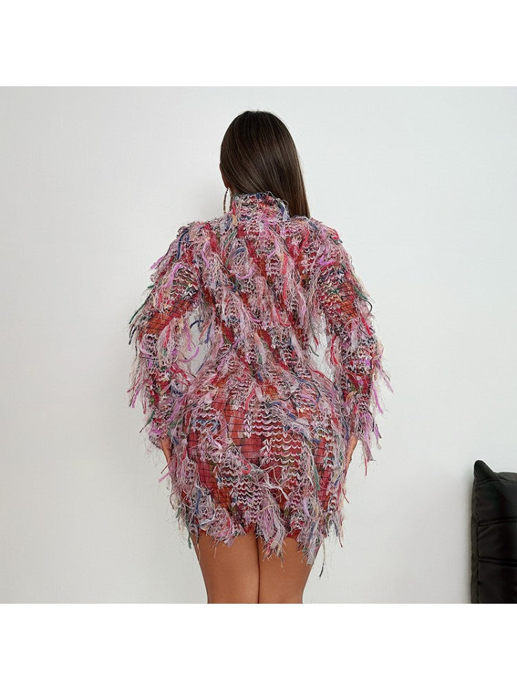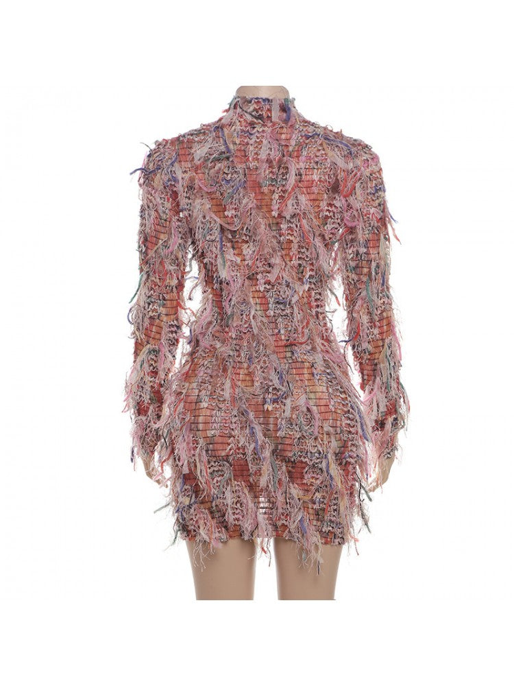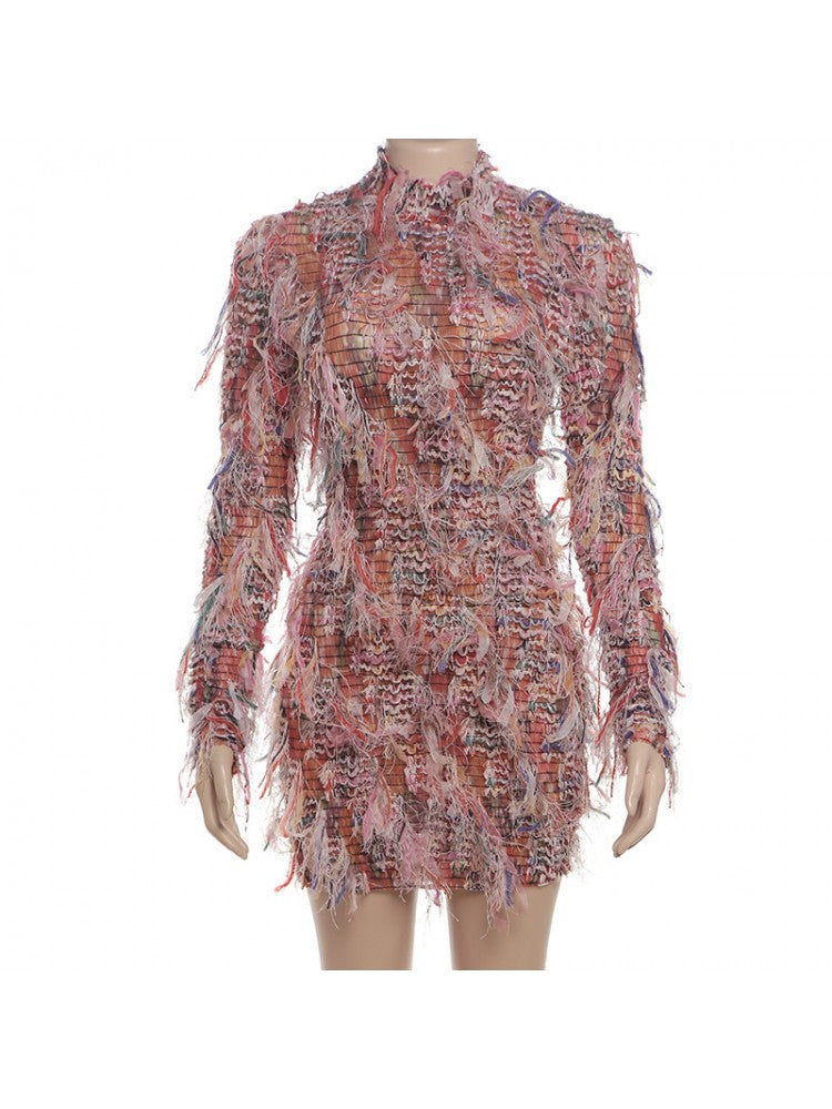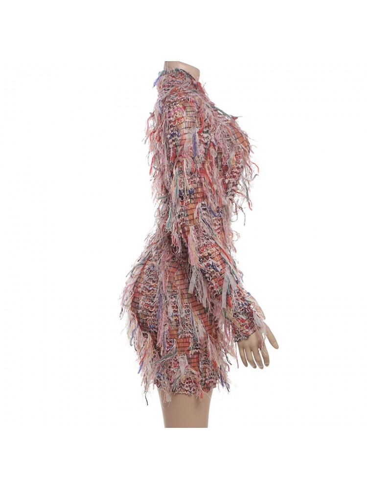 This Contrast Color Fringe Long Sleeves Mini Dress is a must-have for any modern wardrobe! Crafted from high-quality textured Terylene, Polyester, Spandex and designed with comfort and style in mind, this piece offers a relaxed yet chic look. Crafted with soft, breathable and unique Color block, Patchwork, Fringe, it ensures all-day ease while keeping you fashionable. Available in Pink, this affordable Long Sleeve Dress is perfect for staying on-trend without breaking the bank.